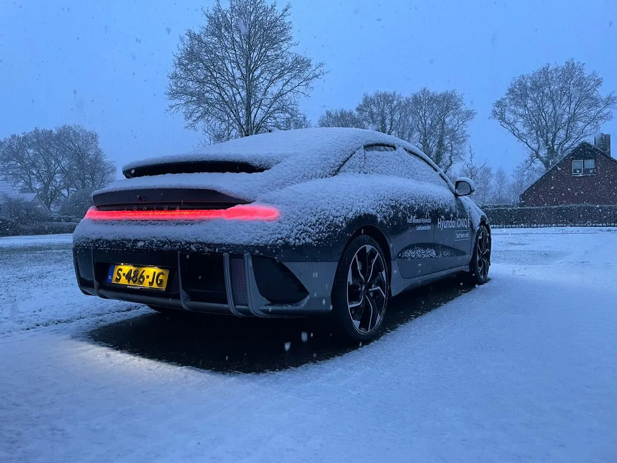 Ten opzichte van de IONIQ 5 is de IONIQ 6 stukken strakker geveerd, wat de rijprestaties wel ten goede komt. Echter zijn er ook wat kanttekeningen; de auto in onze test was uitgerust met zomerbanden. Zodra het wegdek enigszins nat is, begint de auto vrij enthousiast te kwispelen. De achterkant breekt erg snel uit op een ietwat onverwachte manier, wat niet in alle gevallen fijn is. Het voelt minder voorspelbaar dan bij de eerder geteste MG4, wat natuurlijk een significant kleinere auto is. In lichte sneeuw wordt dit effect versterkt en kan je de auto beter op de oprit laten staan. Natuurlijk is met zomerbanden in de sneeuw rijden per definitie geen top idee, maar we maken allemaal wel eens een foute keuze (ah joh, kan wel... Vaak ben je te bang!). Met de IONIQ 6 RWD dus niet doen, gewoon netjes winterbanden nemen.
